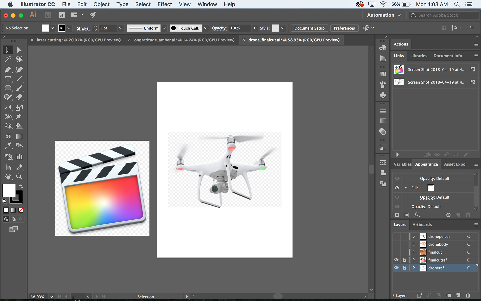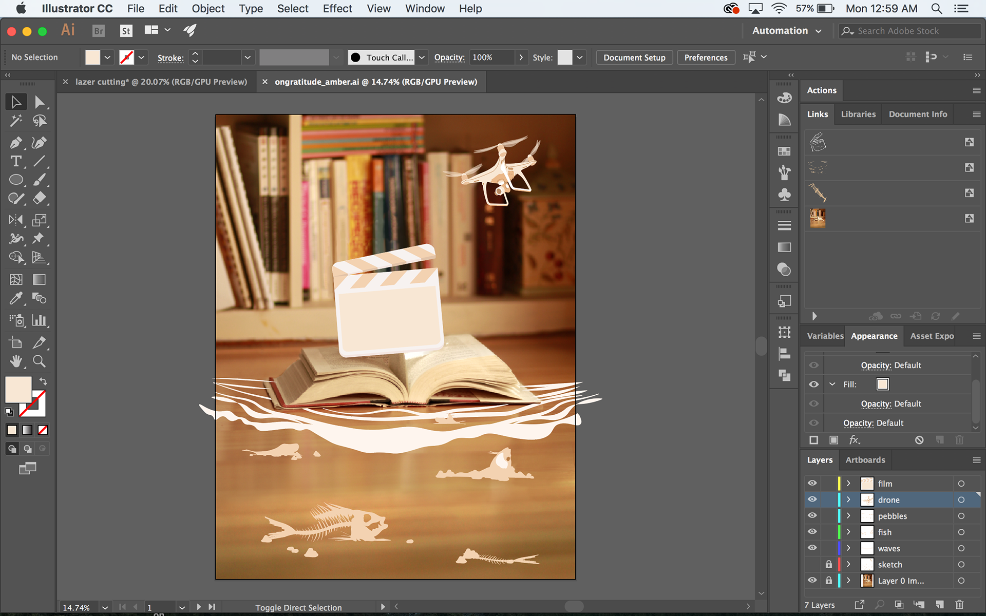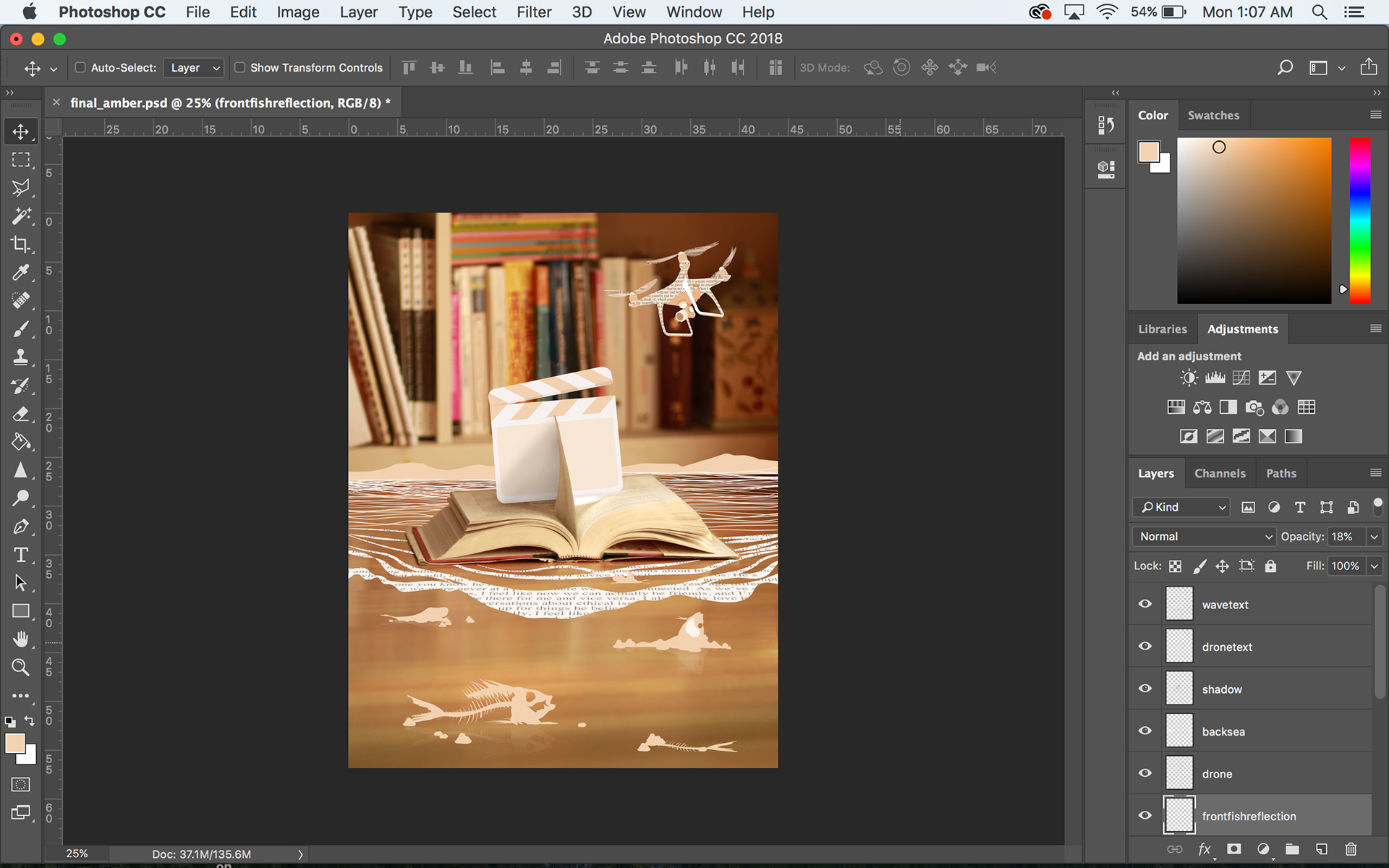 3. I then transferred the vector files into Photoshop, where I placed them loosely based off the sketched composition, added text from their story, highlights and shadows, reflections, and made additional tweaks.