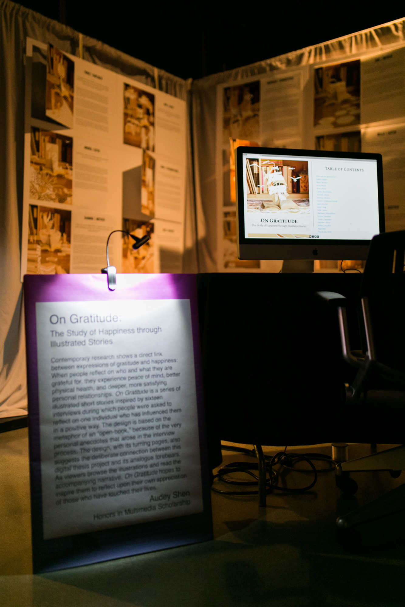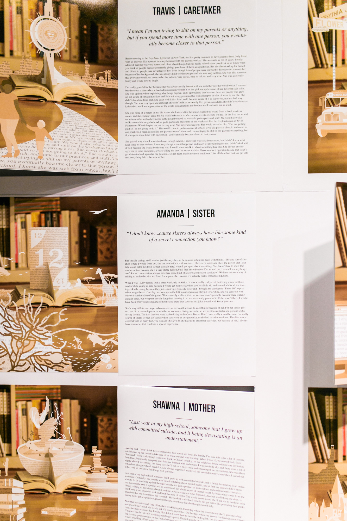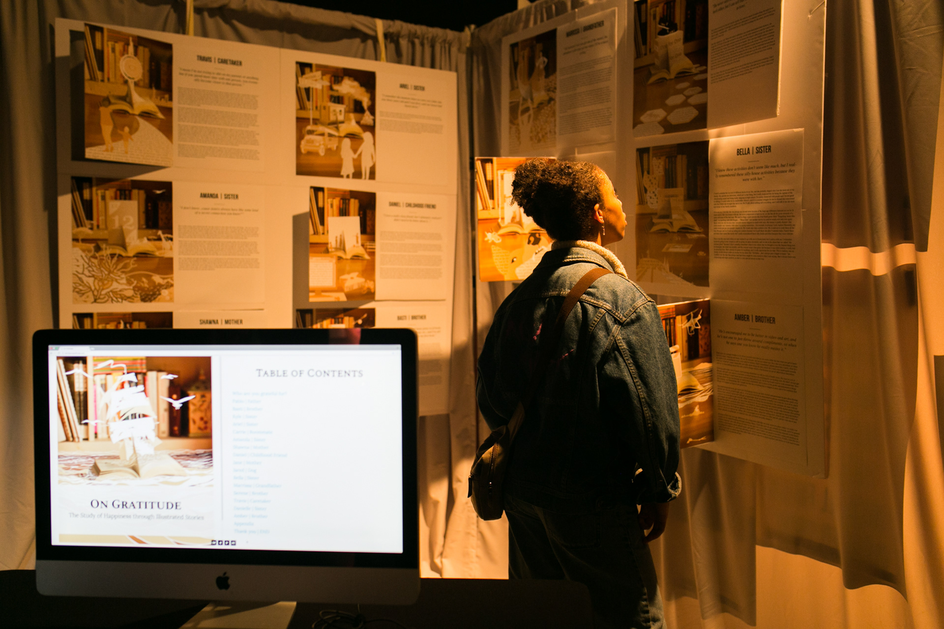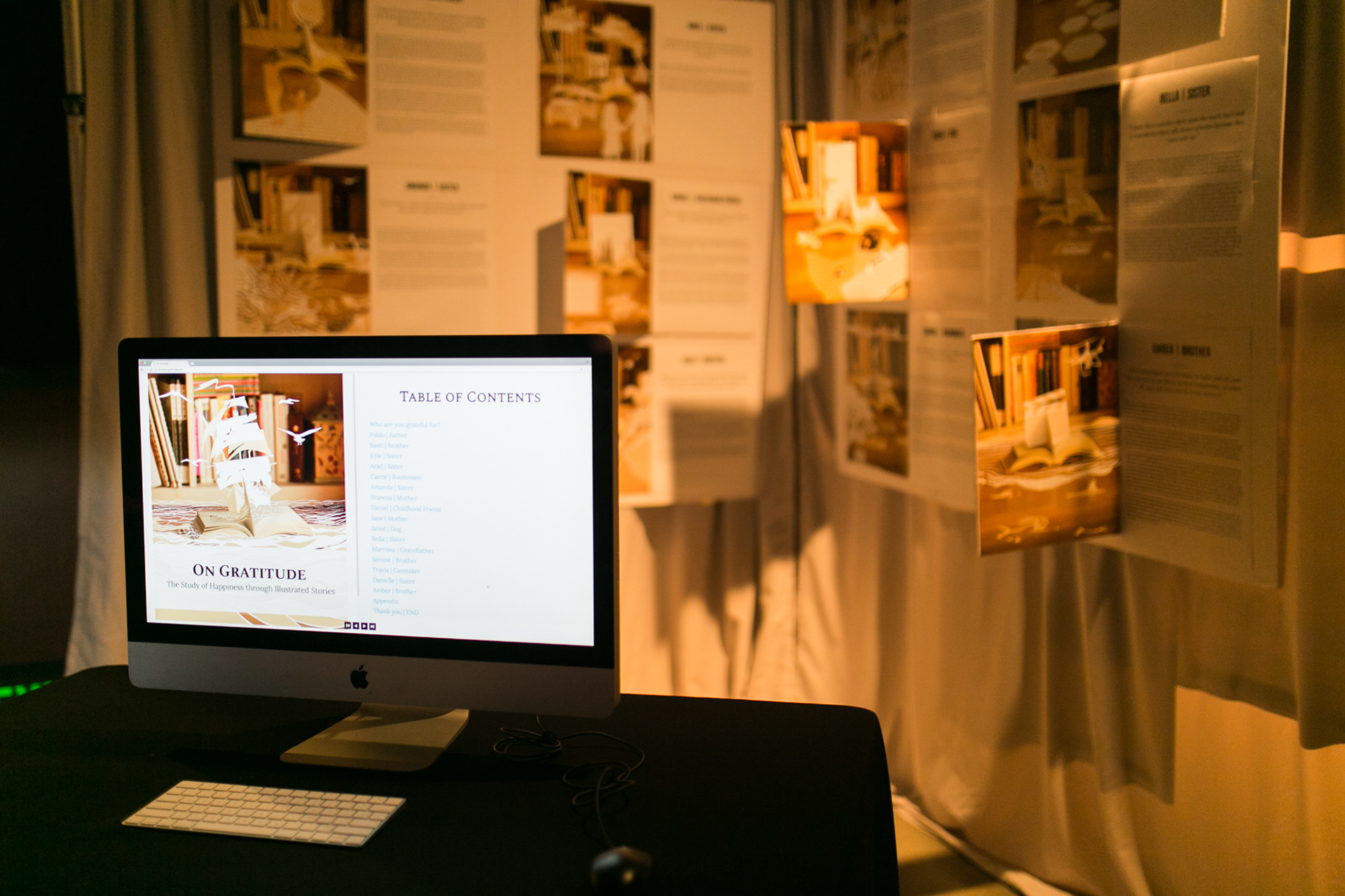 On Gratitude is a series of illustrated short stories inspired by 15 interviews during which people were asked to reflect on one individual who has influenced them in a positive way. The design is based on the metaphor of an “open-book,” because of the very personal anecdotes that arose in the interview process. As viewers browse the illustrations and read the accompanying narrative, On Gratitude hopes to inspire them to reflect upon their own appreciation of those who have touched their lives.
