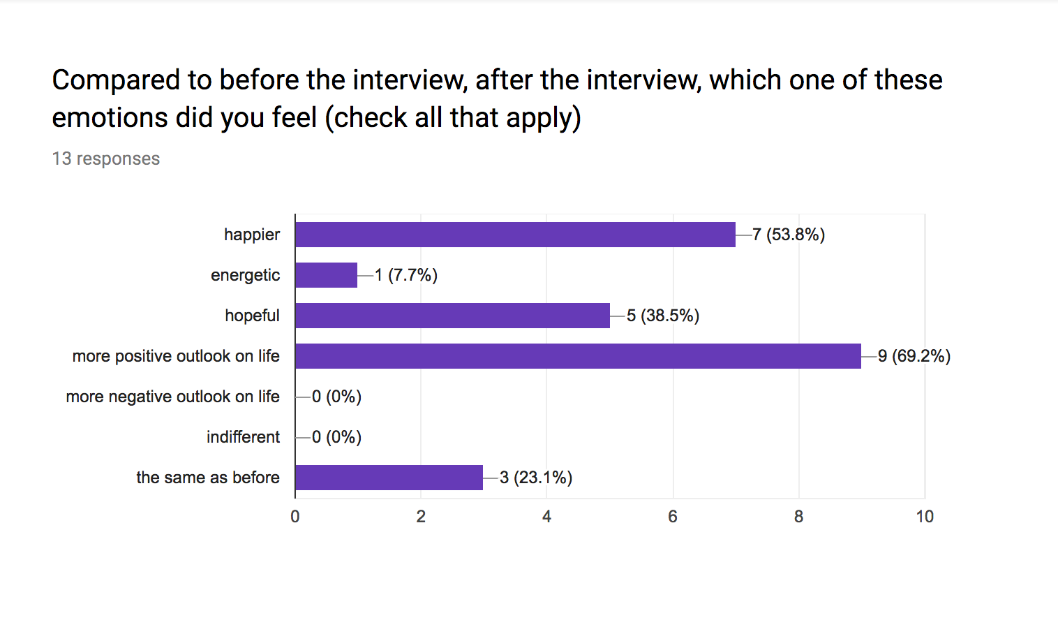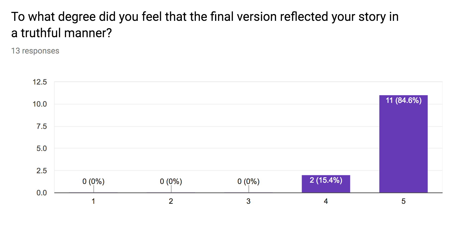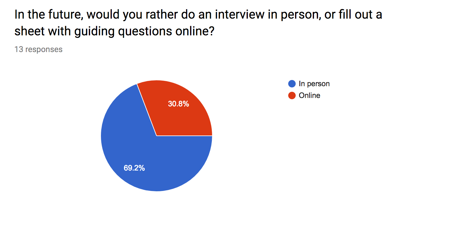3. Finally, I sent all my interviewees a survey to make sure they were okay with my version of their story, as well as for feedback.