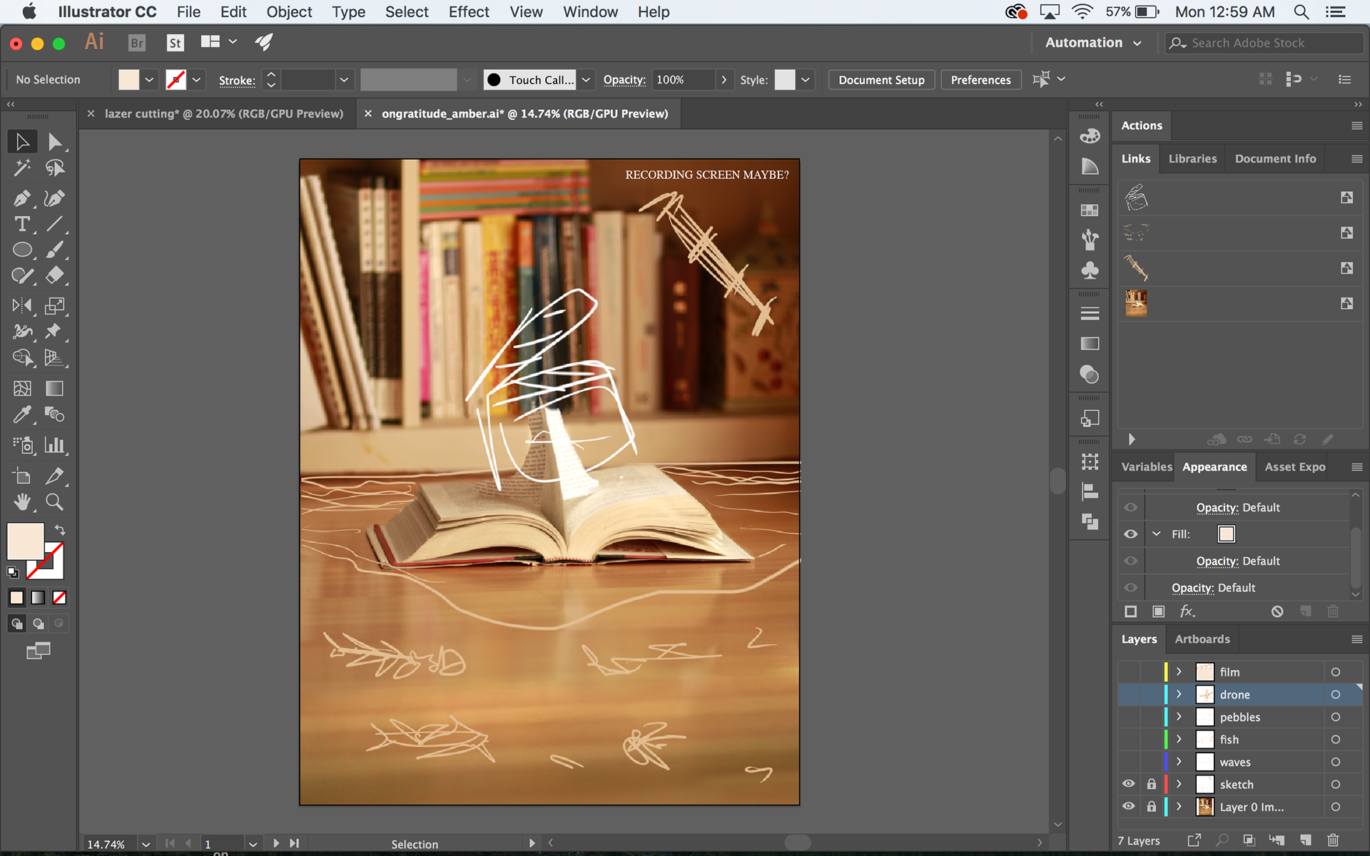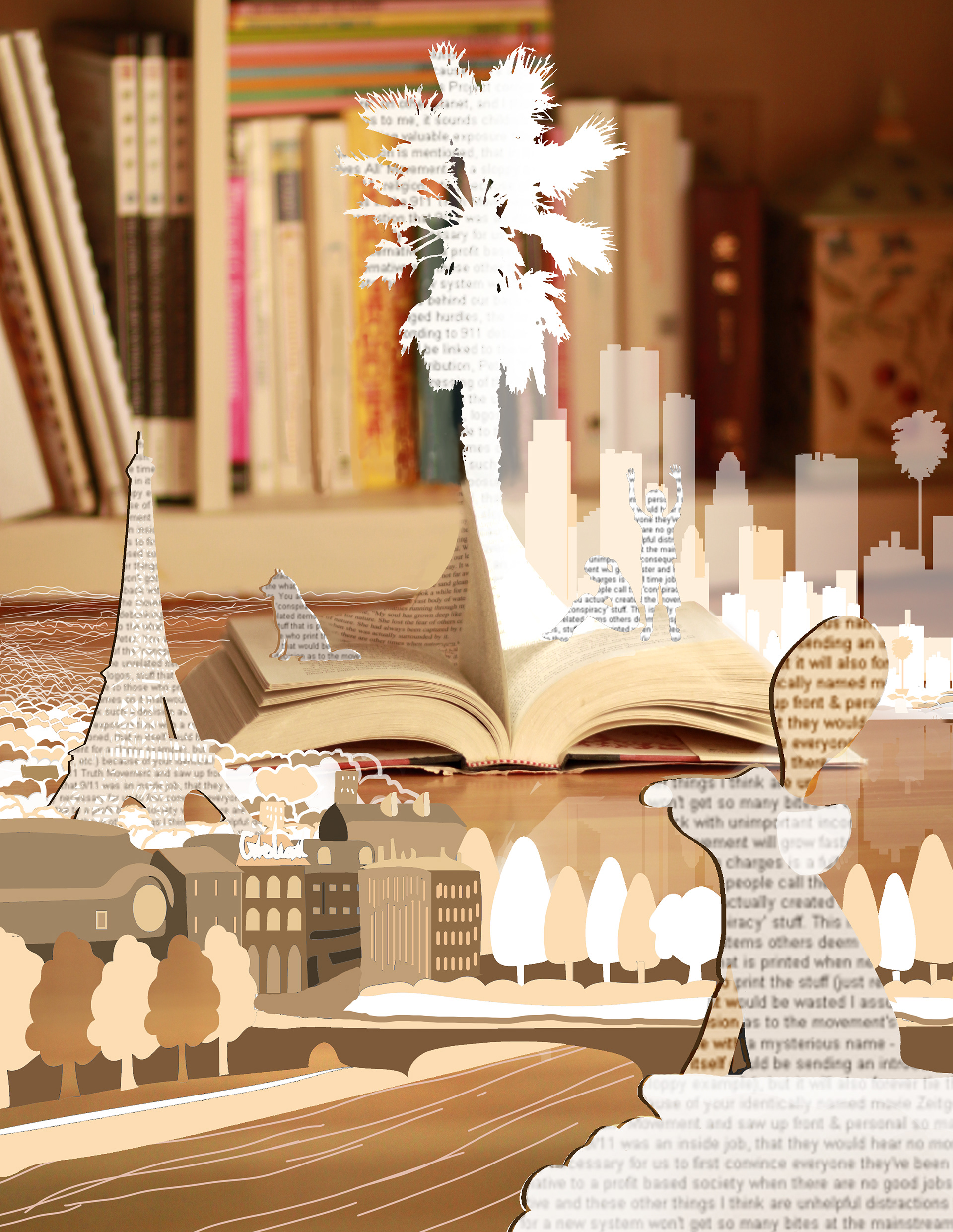 1. After pinpointing what I wanted to include in the illustrations for each story, I first screen-shotted stock image for inspiration, brainstormed, and sketched out potential compositions on photoshop. I used the "open-book" photo that I took in my living room.